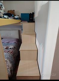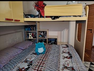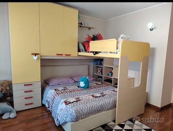 Bellissima camera acquistata in negozio di design no mercatone o simili, letto parte sopra mai usato, mobili tutti arrotondati e zero spigoli e maniglie morbide adatta anche a bambini piccoli, mia figlia non usa e ora x cambio casa e troppo grande purtroppo x noi, misure altezza 2,60 profondità 60cm,larga 3,15 lunghezza totale 2,20 x altre info chiamatemi be da vedere molto bella