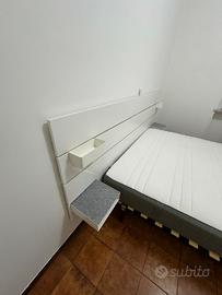 Vendo come da titolo Camera da letto IKEA, rete, materasso "VESTERÖY" e testiera attrezzata "NORDLI", più parete armadio "BOAXEL" completa da 5 moduli per un totale di 3 metri di armadio, più guida per istallare tenda Ikea per renderlo molto elegante. la camera è già smontata e pronta ad essere trasportata e rimontatata. I mobili non hanno segni di usura o danni, la camera e il materasso hanno meno di 2 anni. il valore da nuovo è quasi 1000€