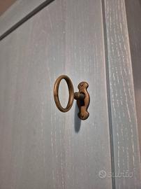 Ampie ante con maniglie in metallo anticato, di cui due con specchi interni a tutta altezza
