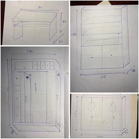 - Scrivania: 80 x 45 cm – altezza 82 cm