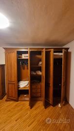 Vendo camera completa di letto matrimoniale, 2 comodini, armadio a 5 ante, comò con specchiera, tutto in noce nazionale, no spedizione.