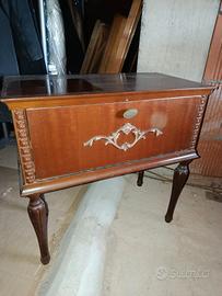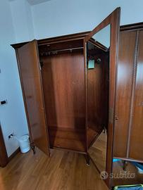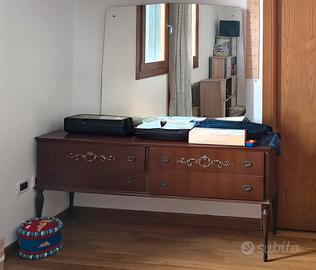 Vendesi splendida camera da letto matrimoniale completa in stile classico coordinato anni '70. Un set caratterizzato da raffinati inserti e maniglie in OTTONE su tutti i pezzi (armadio, letto, comò e comodini), che donano luce e valore nel tempo. Il set è composto da 6 pezzi principali: ARMADIO (Già smontato): L 263 x P 63 x H 187 cm. Due grandi specchi (ante sinistra). Interno: 2 cassetti (ante destra) e 4 ripiani centrali. Finiture e bocchette in ottone. COMÒ CON SPECCHIERA: L 170 x P 47 x H tot. 168 cm. 4 ampi cassetti con maniglie in ottone lavorato. 2 COMODINI COORDINATI: L 58 x P 31 x H 56 cm. Apertura a ribalta con dettagli in ottone. LETTO MATRIMONIALE (Già smontato): Sola struttura con inserti coordinati al resto del set. 2 SEDIE: Coordinate (H 77 cm). 🎁 IN REGALO: Inclusi nel prezzo 2 ABAT-JOUR coordinati per i comodini. Armadio e letto sono già smontati e pronti al carico. Risparmio totale di tempo e fatica per chi acquista! Prezzo: € 950 (trattabili) Luogo: NOVE (VI) Ritiro: A carico dell’acquirente.