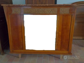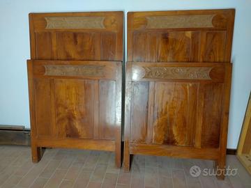Vendo camera completa in legno di ciliegio della prima metà del 900, complessivamente in buono stato. Il ripiano della cassettiera, che si completa con lo specchio, è in marmo rosso di Verona. L'armadio è smontato ma completo di tutto, dispone di una cassettiera sotto e le due ante sopra. Due letti composti da testiera e pediera. Presenti i due comodini con gli stessi ornamenti di specchio e letti. Ritiro zona Vicenza.