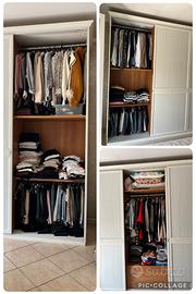 - Armadio 3 ante scorrevoli (misura 6ante) con specchio centrale, internamente completo di cassettiera, mensole e tubi;