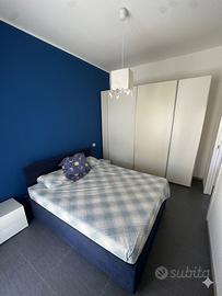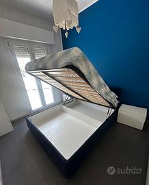 Camera da letto completa. Letto matrimoniale contenitore in perfette condizioni. Materasso memory super comodo. Due comodini e una cassettiera come nuove. Armadio a tre ante con sportelli da sistemare perché non scorrono molto bene. Tutto abbinato sui toni del bianco. Interno in legno chiaro sia per i mobili che per il lefto. Ritiro in casa, piano rialzato senza ascensore.