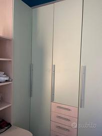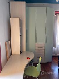 vendo camera ragazzo/a letto singolo ( struttura letto +materasso 208x98),armadio angolare ( 260 x 45 x 190) ,scrivania sagomata con scaffale soprastante e sedia( 150x80x72 h),mensola a tre piani. Smontaggio e trasporto a carico dell'acquirente