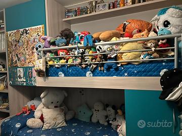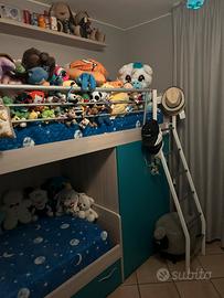 Cameretta completa come nuova solo un anno di vita usata meno di meno composta da due letti a catello con affiancata libreria e due armadietti , mensola sovrastante, scrivania con sedia, colonnina con ruote e armadio gigante a sei ante quattro stagioni tutti i componenti in bicolore , cassettiere e scaletta oltre a lampadario ideale per tutti usata appena due mesi del valore di €6.000/00(seimila euro)