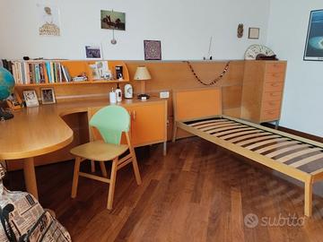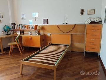 Vendo camera completa per ragazzi o adulti, in ottime condizioni e realizzata in legno chiaro con finiture arancioni. Il set include: