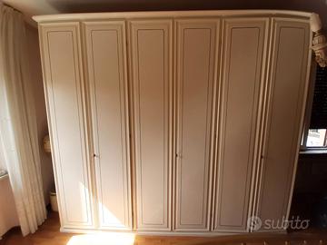 CAMERA completa a 1000 o a pezzi. ARMADIO GRANDE 400 ? Legno massello laccato ottimo stato, 6 ante ALTO 273 largo 311 x 60; -LETTO ottone massiccio 250? (no materassi no reti), COMO 125\95\55 e 2 comodini a 250?. MONTAGGIO TRASPORTO non compreso, per armadio si prendono 120-150 ?. A parte vendo specchio, 4 sedie, appendiabito in ottone, bel lampadario in ceramica a 3 luci. La camera è GIA' SMONTATA. Cedo per vendita casa ---Vedi altri miei annunci, mobili in ottimo stato !