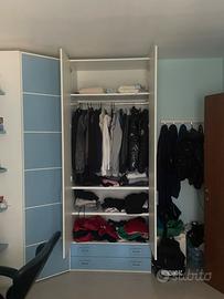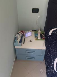 Vera occasione: Cameretta completa per ragazzo in ottime condizioni - Solo €650! Sogni una cameretta da favola per il tuo ragazzo/a? Questa cameretta completa è la soluzione perfetta! Inclusi nel prezzo: • Letto singolo una piazza e mezza con contenitore, testiera imbottita color blu, rete a doghe in legno. Materasso ortopedico una piazza e mezza incluso. • Armadio angolare: Ampio e capiente, perfetto per riporre vestiti e giocattoli. Con ante a battente e cassetti color azzurro. • Scrivania: Ampia e funzionale, con cassetto color azzurro. • Sedia da scrivania: Comoda ed ergonomica, con ruote. • Scaffale a muro: Con 6 scomparti color azzurro, perfetto per libri e oggetti vari. • Comodino: Con 2 cassetti color azzurro. • Mensole ad angolo: Con 5 ripiani, perfette per foto e decorazioni. • Tappeto scuro: Per un tocco di calore e comfort. • Plafoniera a forma di pallone da calcio: Un tocco di originalità e divertimento. Caratteristiche: • Colore: Bianco e azzurro, perfetto per un ambiente fresco e moderno. • Materiale: Legno e laminato di alta qualità. • Condizioni: Ottime, senza graffi o difetti evidenti. • Prezzo: Solo €650 mi! Un affare da non perdere! Perché scegliere questa cameretta? • Completa: Include tutto il necessario per arredare una cameretta da letto. • Funzionale: Scrivania e scaffale offrono spazio per lo studio e il gioco. • Elegante: Design moderno e accattivante. • Conveniente: Prezzo imbattibile per un set completo di mobili di alta qualità. Non perdere questa occasione! Pagata euro 1150 vendo a euro 650. In aggiunta anche a un piccolo prezzo le tende in tema dei colori della camera, una lampada e un televisore. Pagamento in contanti. smontaggio e Ritiro da metà Giugno (non prima) a cura dell’acquirente in Arenzano (GE ). Non spedisco. Solo se interessati telefonare al 331/5332666.