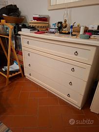 Camera completa due comodini 41x59x54 un cassettone 118x50x86 un armadio 270x241x56 uno specchio 90x70 e un letto matrimoniale in ferro nero tutto come da foto.Per info.scrivetemi.