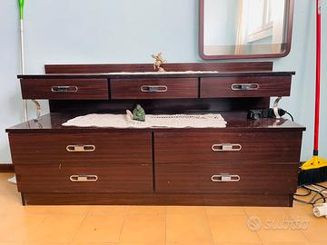 Buongiorno, vendo camera completa di vecchio stile, con struttura letto e due comodini laterali, radio incorporata e luci laterali, con rete e materasso, un mobiletto e un armadio.