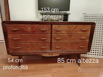 Camera antica: armadio, 2 comodini, cassettiera e letto. Legno lucido con decorazioni e piano in vetro.