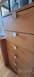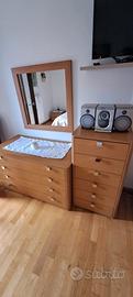 per cambio arredamento vendo camera completa di letto matrimoniale, due comodini, cassettiera, settimino e armadio guardaroba 240x230. Disponibile per il ritiro con armadio già smontato dal giorno 11/05.