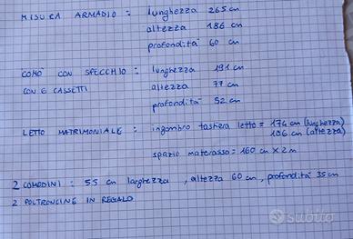 Prezzi: se acquisita a pezzi singoli, 150€ letto,250€ armadio, 100€ comodini e 200€ comó. Se acquistata in blocco euro 500€