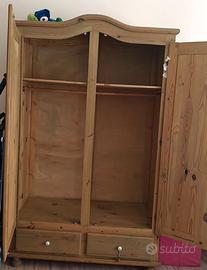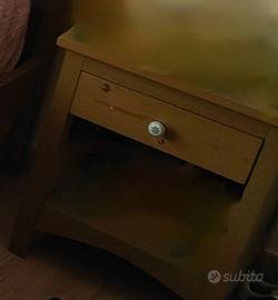 Amardi due ante ciascuno, in vero legno e pitturati a mano. Molto ampi e nonostante siano vintage, in ottime condizioni. Pomelli cassetti e ante in vetro e dipinti a mano. Letto singolo con materasso nuovo. Comodino. Scrivania