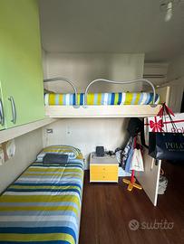 Scopri l'eleganza e la funzionalità di questo completo per camera da letto, ideale per ottimizzare gli spazi senza rinunciare allo stile. Composto da un letto a castello con struttura robusta, offre due ampie armadiature: un armadio a ponte che sfrutta al meglio l’altezza della stanza e un armadio a due ante per un ulteriore spazio di stivaggio. La scrivania separata completa il set, offrendo un angolo dedicato allo studio o al lavoro. Le dimensioni generose, con il letto a castello di 210x90 cm e l'armadio a ponte largo 200 cm, assicurano una soluzione pratica e versatile per ogni esigenza. Perfetto per chi cerca un arredo funzionale, ma dallo stile contemporaneo, ideale per camere da letto moderne o stanze di ragazzi.