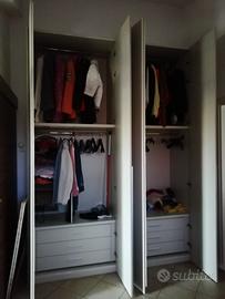 Vendo camera da letto con armadio 4 ante completo di 4 scomparti e 2 cassettiere come da foto in legno larice h 3 mt ca larghezza 2.40 più letto contenitore comodo per piccole stanze e materasso Memory foam già smontati 750 euro