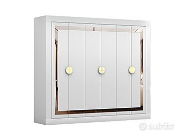 L’armadio a 6 ante scorrevoli è il punto focale della stanza: grande e con maniglie ben evidenti, conferisce luminosità a tutto l’ambiente.