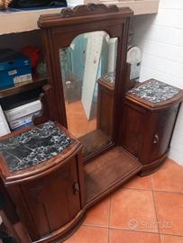 Vendo camera d'epoca dei primi 900 completa. Mobili in legno castagno, un legno resistente e non attaccabile dalle tarle. Composta da nr. 6 componenti, di cui: -Armadio a 3 ante -Comò con 3 cassetti -2 Comodini -Base letto -1 Toilette con base in marmo prezzo: 1000 trattabile