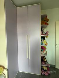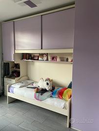 Vendesi camera da bambina colore lilla e panna in ottime condizioni. Parete lunga m 3,94 parete corta m 2. Ante scorrevoli sopra al letto e armadio angolare con all’interno una sorta di cabina armadio.