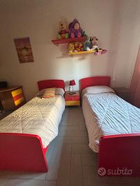 Vendesi stanza completa! Oltre ai due lettini singoli con materassi e reti ortopediche, l'offerta include: armadio 4 ante, scrivania con cassettiera, comodino, porta TV scaffalato, mensole, cubi e tende. Prezzo: 100. Opzionale: stampante aggiuntiva a 30 euro.