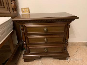 Camera da letto completa di letto comodini armadio e cassettone con specchio … vendita anche separata… smontaggio e trasporto a carico dell’acquirente. PREZZI VENDITA SEPARATA : Armadio composto da 4 ante laterali / 2 ante centrali e 4 cassetti Dimensioni in cm H 273-P 65-L310 € 300 Cassettone composto da 4 cassetti H 90 - L 140 - P 54 € 150. Specchio L 91 - H 109 € 60 Coppia di comodini composti da 3 cassetti Dimensioni in cm P 36- H 62- L 69 € 60 cad. Letto matrimoniale dimensioni in cm Testata L 178-H 107. Fondo L 178- H 57 €100 2 reti separate di cui 1 con motore X sollevamento in perfetto stato funzionante € 150 2 materassi singoli in perfetto stato € 50 cad.