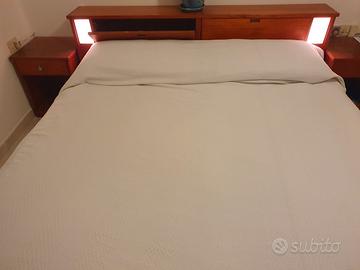 A Carloforte vendesi camera da letto matrimoniale completa. Pezzi unici artigianali in ciliegio, in buone condizioni. Guardaroba a 4 ante scorrevoli come da foto. L 152 (73 interni ad anta), più altro pezzo separato, altezza totale 231 per 61 di profondità; cassettiera a 8 cassetti (150x85x50); testata letto con luci/abat-jour laterali e due aperture per cuscini e/o coperte (182x25x78); fascione giroletto porta rete separato dalla testata e rete per materasso 170x190. Altezza del giroletto cm 33; due comodini con cassetti, cm 42x42x53 ognuno.