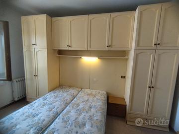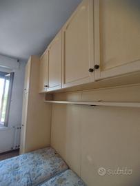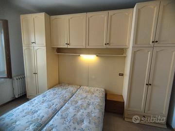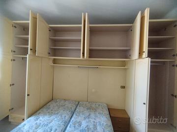 Camera da letto su misura in legno massello Vendo per trasloco camera da letto completa realizzata su misura in legno di ottima qualità (non compensato). La composizione è ideale per ottimizzare gli spazi ed è composta da: Struttura a ponte con armadi capienti laterali e superiori Vani contenitore molto spaziosi Letto matrimoniale (attualmente con due materassi singoli) Illuminazione incorporata sotto i pensili Colore chiaro, stile classico, si adatta facilmente a diversi ambienti. Mobile solido, robusto e durevole nel tempo. Ideale per stanze di dimensioni medie, perfetta per chi cerca una soluzione salvaspazio completa Ritiro a carico dell’acquirente.