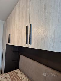 Vendo set completo di arredamento per camera da letto, ideale per ottimizzare gli spazi grazie alla soluzione salvaspazio dell'armadio a ponte. Tutto in ottime condizioni, come nuovo.