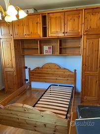 Camera da letto a ponte matrimoniale in legno. La camera viene vemduta già smontata, il trasporto sarà a carico dell’acquirente