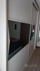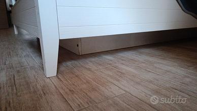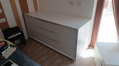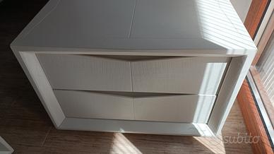 Vendo camera da letto completa, in legno di frassino e rovere massello, Accademia del Mobile, anno 2015, finitura bianco tranché tinto all'acqua. Mobili di ottima azienda e materiale, ripeto, legno massello, non tamburato o nobilitato. Condizioni buone, con qualche inestetismo che vi segnalo già io : un graffio già stuccato e ripristinato sul piano del comó, qualche segno sulla gamba inferiore destra del letto. Niente di grave, ed essendo legno vero a finitura opaca si può ripristinare con semplicità. Il letto ha il contenitore. L'armadio é a due ante scorrevoli sovrapposte, con inserti in vetro fumé. Lato sinistro con mensola a mezza altezza e due appendi grucce, uno in alto ed un in basso, lato destro con barra appendi grucce in alto e due mensole inferiori, per un totale di 3 ripiani oltre all'appendi grucce superiore. misure dei mobili : Comò 160*55 h 75 Comodini ( 2 pezzi ) 55*39 h 38 Armadio 288*68 h 255 Letto con contenitore 180*220 h 33 Vendo causa trasloco in casa con cabina armadio, disponibile a fine maggio/inizi giugno. Smontaggio da concordare, ritiro a carico dell' acquirente. valore di acquisto al nuovo € 7500. le prime foto sono da catalogo, le altre reali. Disponili ulteriori foto su richiesta. prezzo lievemente trattabile. Valuto offerte ma neppure svendo.
