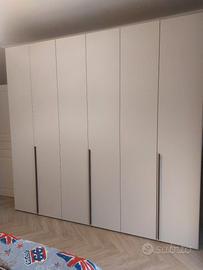 Vendo camera da letto laccata color avorio completa di armadio grande, cassettiera,2 comodini e letto color rosso. Come nuova,2 anni di vita . Vendo causa trasloco. Prezzo da concordare.