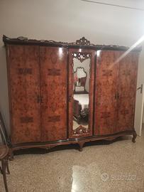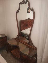 Camera da letto risalente al 1949 completa di mobile letto, due comodini, un armadio con specchio centrale e un comò