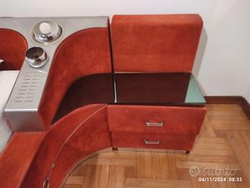 camera da letto completa, armadio, letto, comodini e como', originale degli anni 1970 stile Space Age. Radio nella testata del letto. Materasso e cuscini non in vendita.