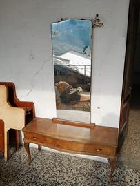 Vendo camera da letto risalente agli anni 50, in discrete condizioni. Composta da struttura letto, due comodini, cassettiera più specchio, mobile più specchio, tavolino e due armadi. Vendo anche separatamente.