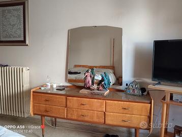 Intera camera da letto, stile anni '60, composta da letto , 2 comodini, armadio 5 ante, cassettiera con specchio e consolle.