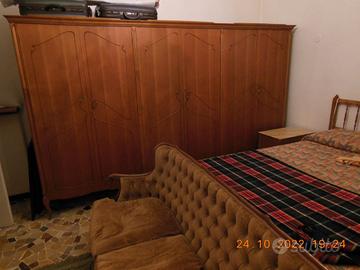 Camera da letto anni 60, in legno con piani in marmo. Composta da letto matrimoniale(senza rete, senza materasso)+ due comodini + armadio a 6 ante Vendo in blocco ad euro 50 Possibile acquisti separati: Letto euro 40 2 comodini euro 20 Armadio a 6 ante euro 20