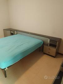 camera da letto composta da letto con reti a doghe , comodini e armadio con specchiera
