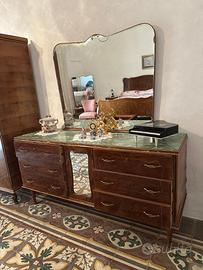 Camera antica da restaurare composta da : Letto matrimoniale in legno Due comodini, di cui uno non si chiude bene Una pettiniera con sgabello Una poltrona E un comò con specchio