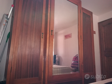 Camera da letto inizi '900 composta da 2 letti singoli, 2 comodini, 2 sedie ed armadio con specchio centrale e 3 cassetti. Decorata con rose in bassorilievo. Maniglie in ottone. Ferramenta originale. Condizioni buone considerando l' età. Smontaggio e ritiro a carico dell'acquirente. La merce si trova a Cortina d'Ampezzo.