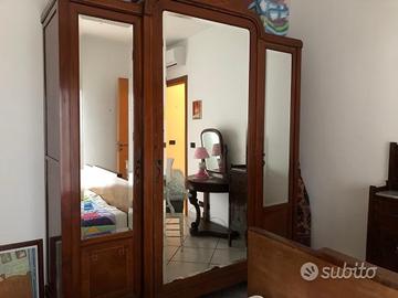 Camera da letto antica composta da armadio comodino e letto (con rete e materasso) in legno massello