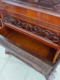 Vendo camera da letto Antica in buono stato, completa di: Mobile secretè con piano in marmo misure circa 100L x 46P x 158H; coppia comodini con piano in marmo; letto matrimoniale; armadio; poltroncina Savanarola;