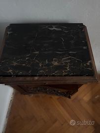 Camera da letto completa di due comodini, un comò tutti intarsiati, nessun difetto, piani del comò e dei due comodini in marmo nero. possibilità di ritiro in loco a vostre spese.