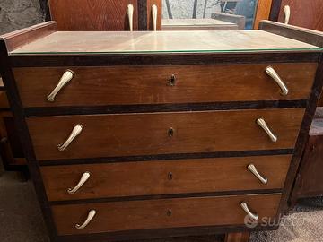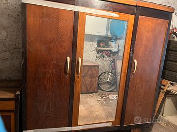 Mobili antichi,camera composta da armadio a 3 ante con specchio, due comodini,cassettiera con 4 cassettoni e spalliera letto.