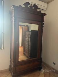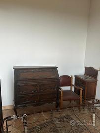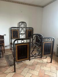 Vendesi camera da letto d'epoca completa, in legno massello e ottimo stato. Il set comprende: Settimanale (7 cassetti):Modello di pregio con intagli laterali (cariatidi) e frontale sagomato. Armadio a 1 anta:Con grande specchio centrale originale e cimasa decorata. Letto Matrimoniale:In ferro battuto con pannelli dipinti. (stile Liberty). Coppia di Comodini (2 pezzi):Entrambi con piano in marmo originale integro, cassetto e sportello. Mobili sani e ben conservati. PREZZO LOTTO COMPLETO:€ 1.600 (Trattabili per ritiro in blocco). NOTE:Smontaggio e trasporto a carico dell'acquirente. Info in privato.