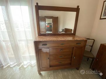 2. Comò con Specchiera: Mobile a 4 cassetti e due sportelli laterali, arricchito da un elegante piano in marmo originale e ampia specchiera superiore coordinata.