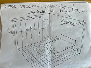 -letto matrimoniale 173cm x 218cm-doghe-materassi singoli come nuovi + comodini 300,00 -cassettiera 100,00 -armadio 6 ante 277cm h253 400,00 solo ritiro a proprio carico