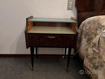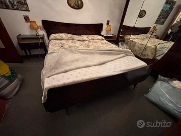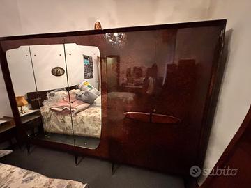 Camera matrimoniale Art Deco del Medioevo italiano Tavolini da letto Wood e vetro, cassettiera, letto e armadio compreso di specchio