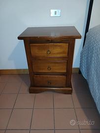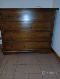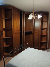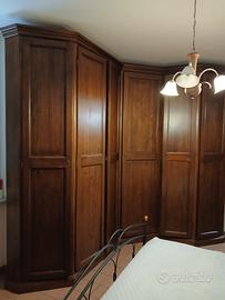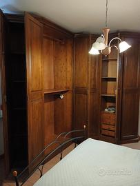 vendo camera da letto arte povera composta da armadio ad angolo ( guardando le ante lato destro lungo circa 2 m , lato sinistro lungo 2,60 m, h 2,40 m) con ripiani e 4 cassetti porta biancheria, 2 comodini a 3 cassetti , 1 mobile a 4 cassetti. Non spedisco ritiro presso l'abitazione, il mobile sarà già smontato.